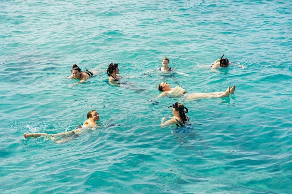 Get ready for music, laughter, and island vibes! The first stop will allow you to dive into the underwater world! We’ll reach a stunning coral reef, where you can grab snorkel gear and look for parrotfish, angelfish, and other tropical creatures!