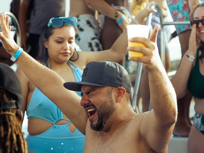 While onboard, guests can enjoy our open bar stocked with refreshing drinks and light appetizers to keep energy levels high. You’ll also mingle with your fellow partygoers, create unforgettable memories, and let loose in paradise! Don’t forget to bring your swimsuit, towel, sunscreen, and your party spirit!