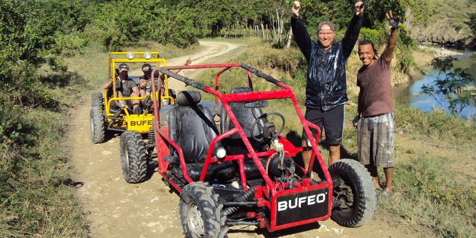 Please remember to wear clothes that you are willing to throw away and sunglasses, as the road can be dusty, muddy, and wet. No License and no special skill are required. After a short briefing, your memorable off road adventure will start. All Buggies are safe and easy to drive.