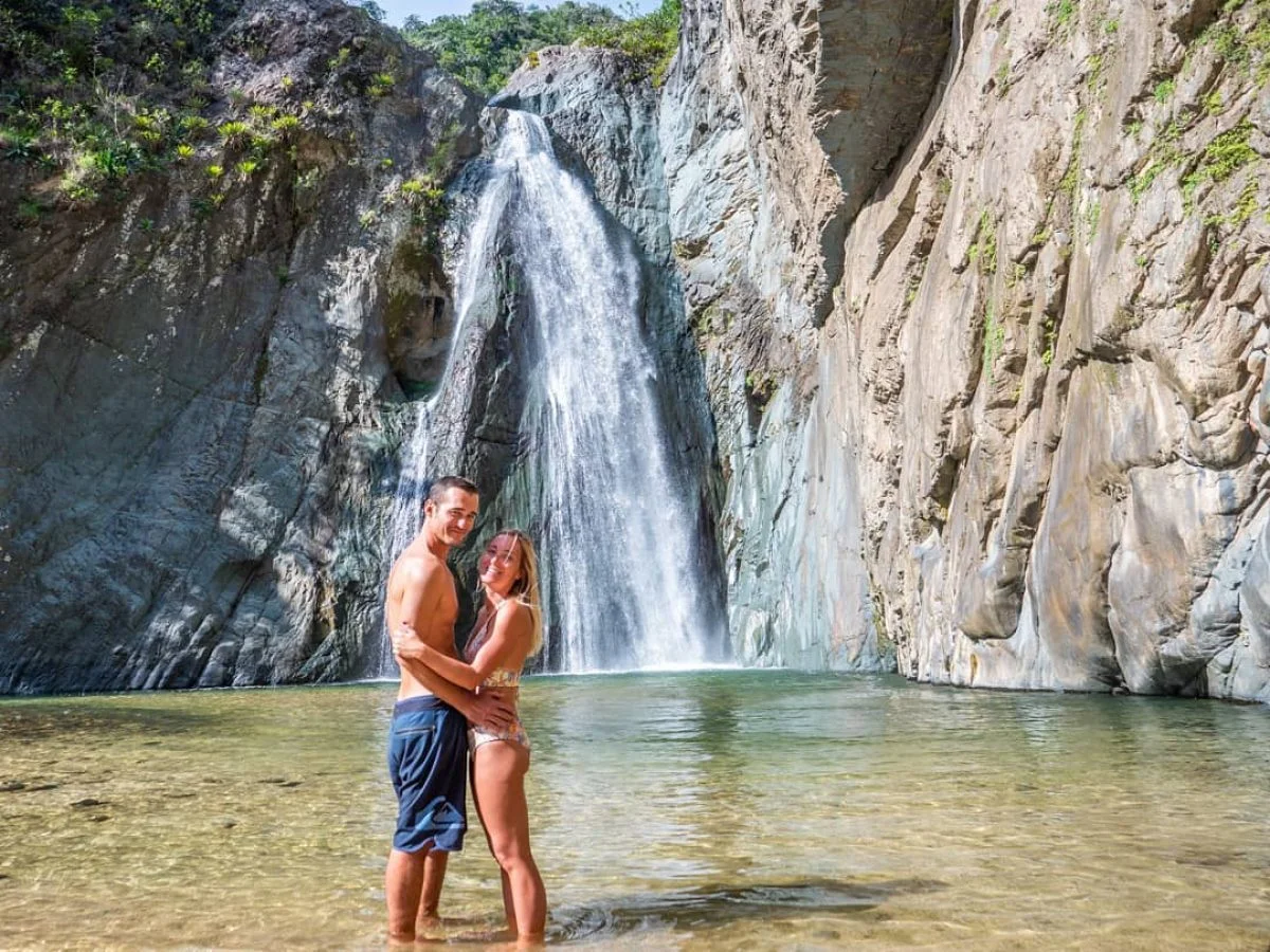 The highlight of this adventure is a **visit to Salto Baiguate**, one of Jarabacoa’s most stunning natural wonders. Hidden deep within the Dominican countryside, this **breathtaking waterfall cascades down into a crystal-clear natural pool**, creating an oasis of pure serenity.
